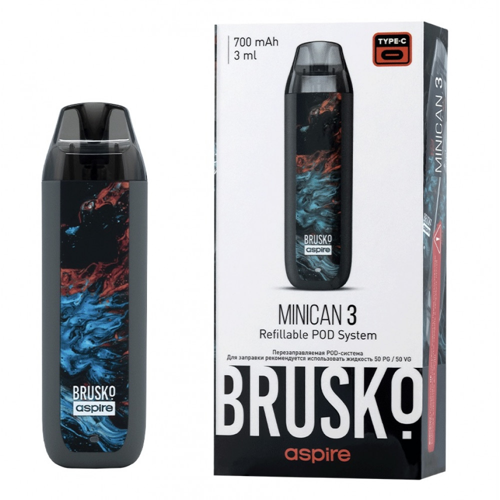 Перезаправляемая Под-Система Бруско Миникан 3 (Brusko Minican 3) 700 mah, Серый Флюид - купить в Клинцах